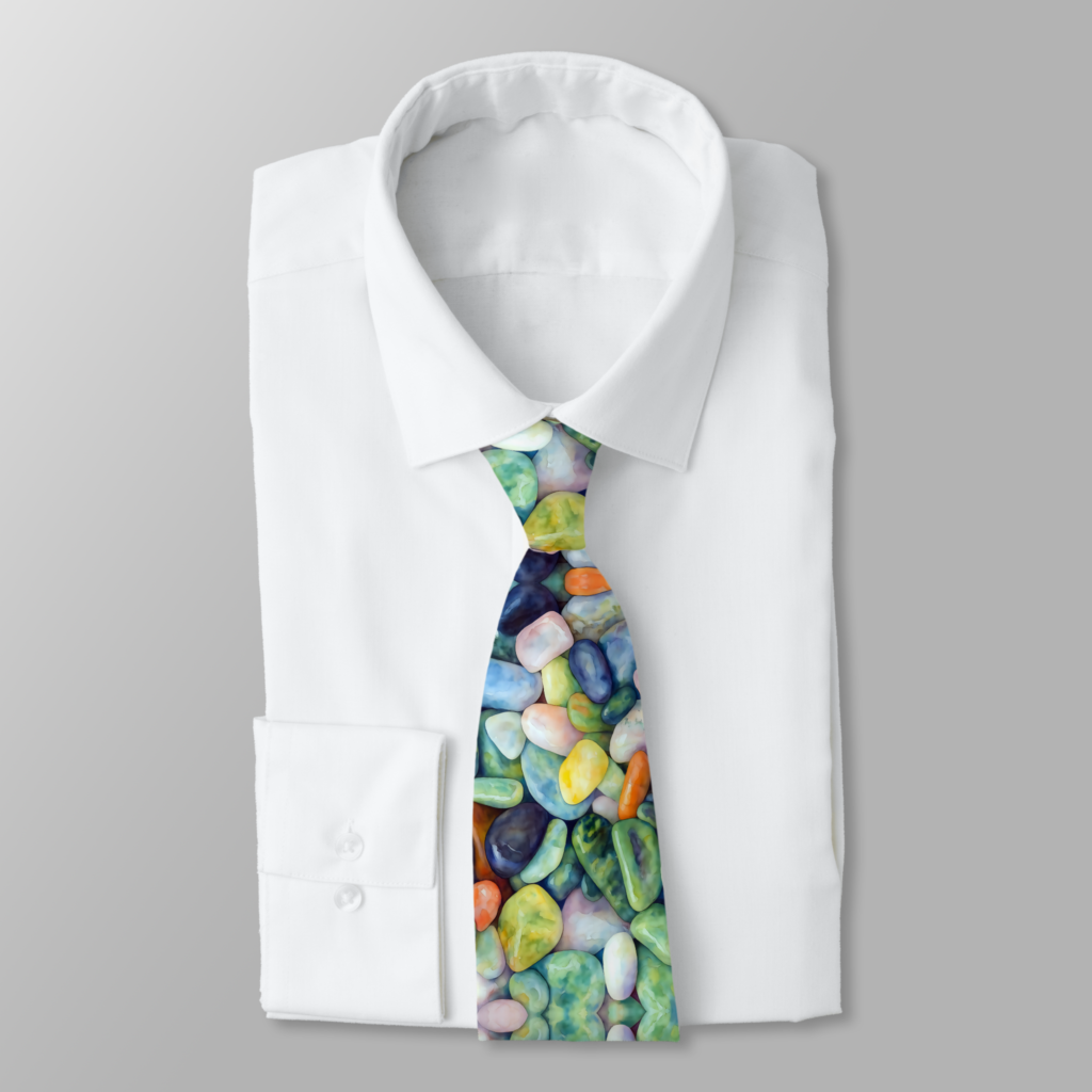 Inspired by natural stone textures, this tie features organic shapes and earthy tones that create a calm yet visually rich design. The mix of colors adds depth and uniqueness, making it a subtle statement piece with an artistic, nature-inspired feel.