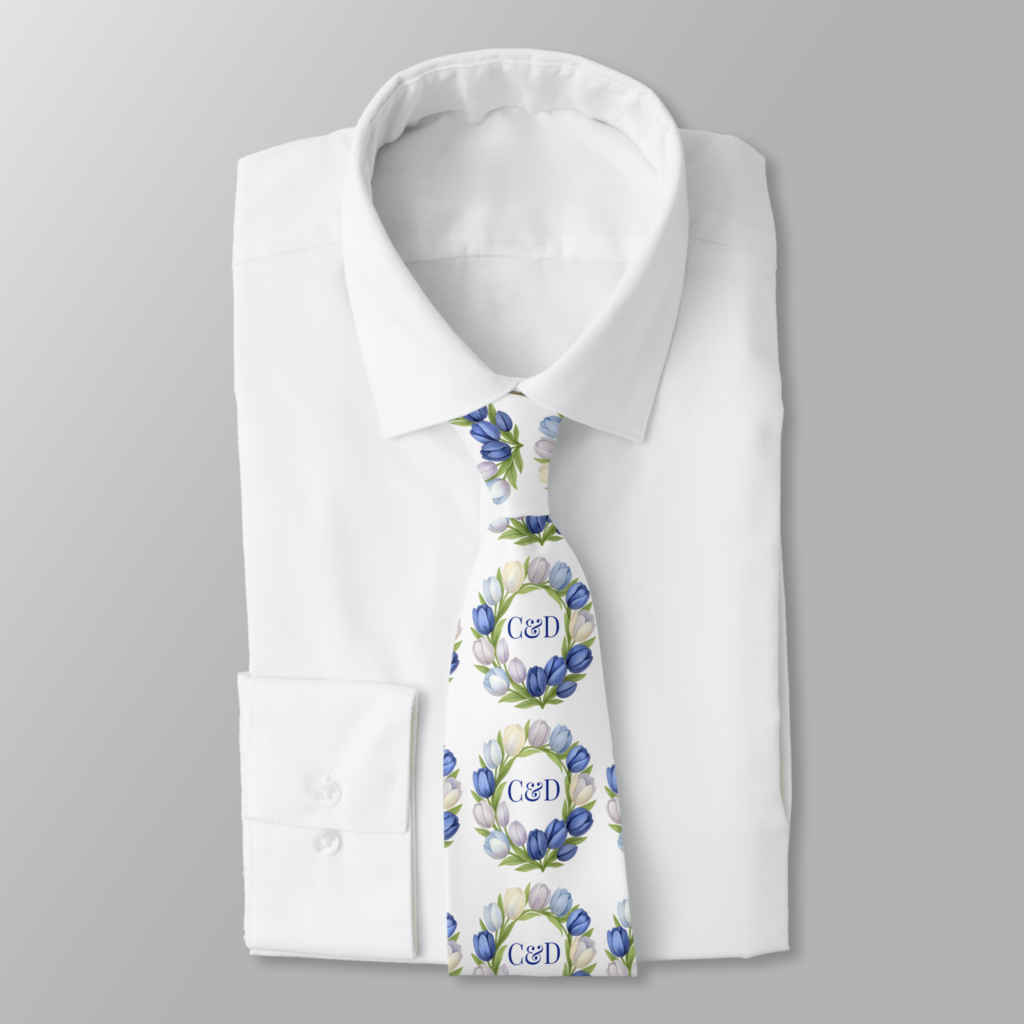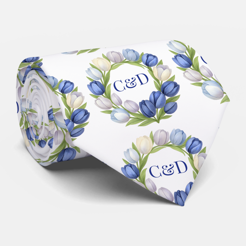 Blue Floral Monogram Tie – Elegant Personalized Style