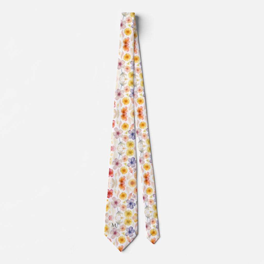 A soft and elegant tie featuring delicate pastel wildflowers in a light, airy composition. The gentle colors and floral details create a refined, romantic look that adds charm without overwhelming the outfit.